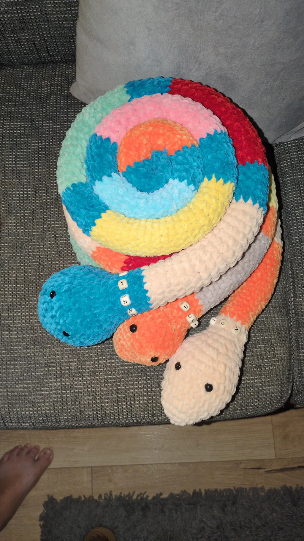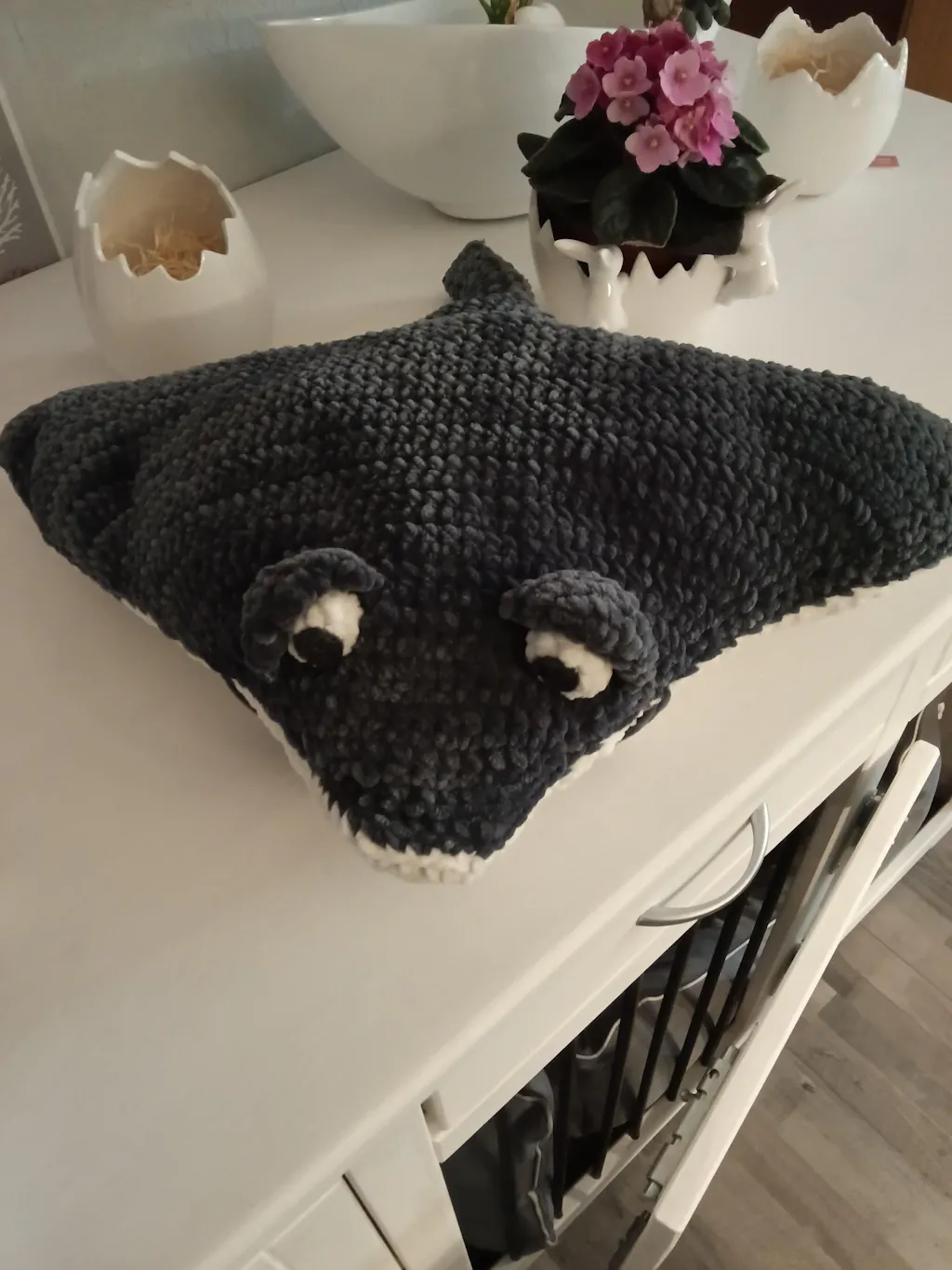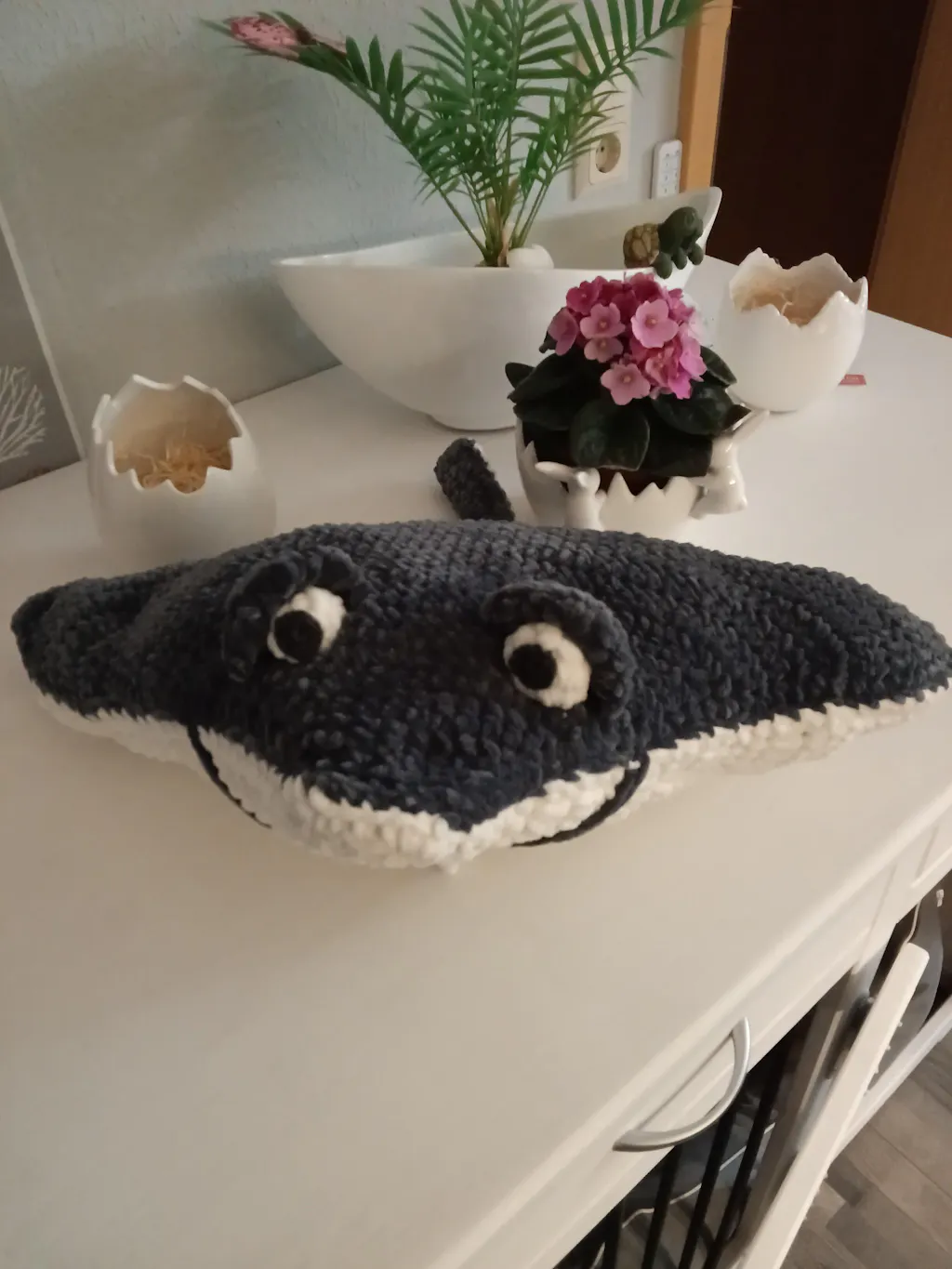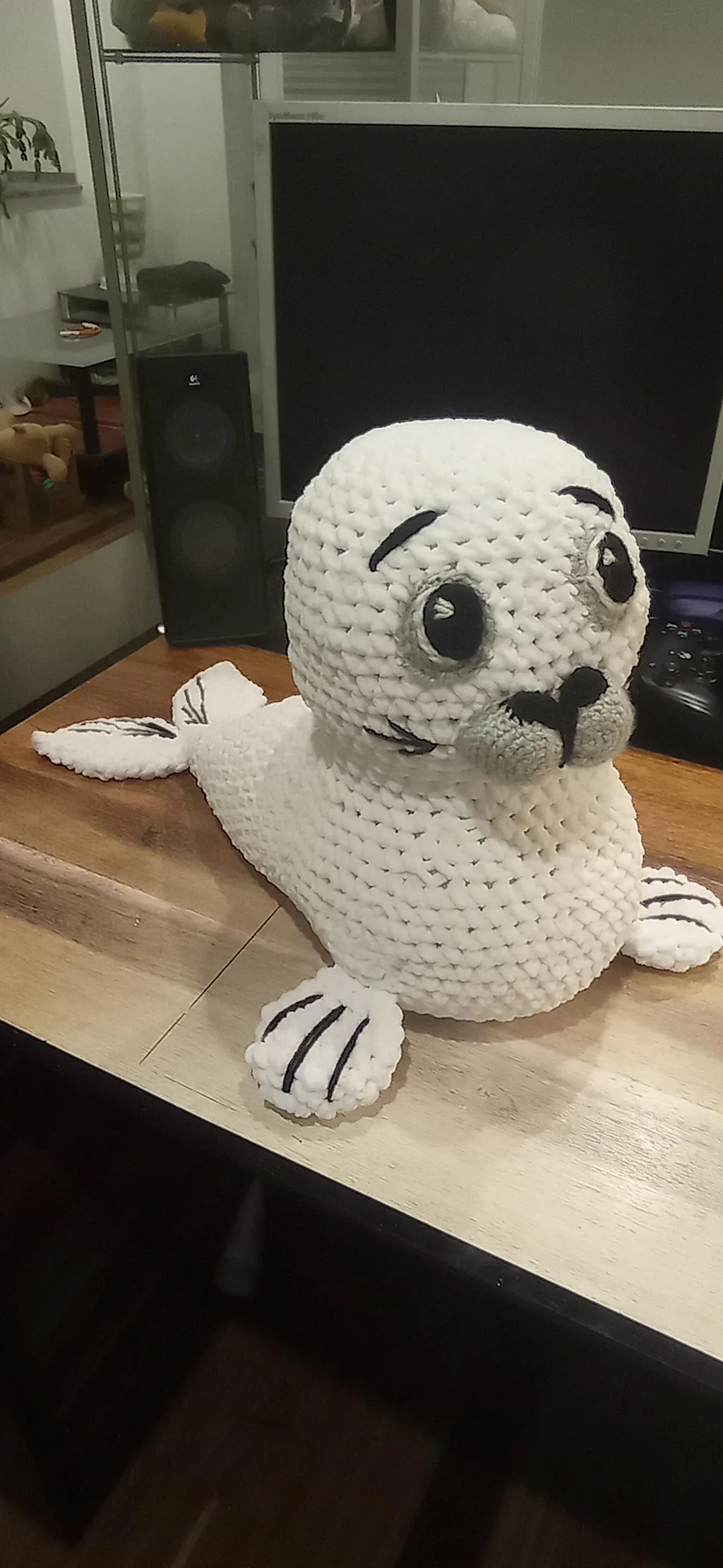 Mein Projekt soll eigentlich mit Baumwolle gearbeitet werden, auf Wunsch wird es aber total kuschelig. und natürlich auch riesengroß. Auf dem Bild ist erst mal nur der Anfang vom Kopf 🤓😊 und der kommt schon auf 53 cm.