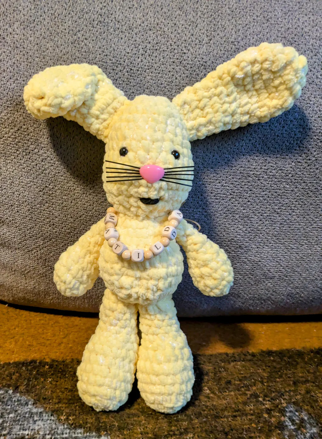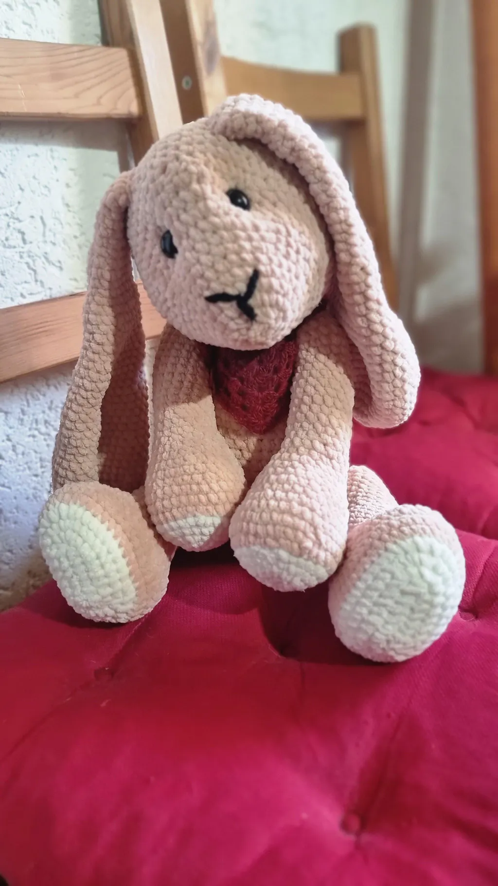 Und fusselt wenig, eigentlich nur etwas beim Aufribbeln. Schön weich. Perfekt für Kuscheltiere. Farbe Puder hatte ich mir anders vorgestellt, da doch eher ins rosa. Hab dann umgeplant und einen Hasen draus gehäkelt.