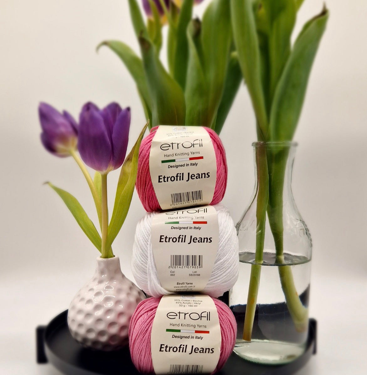 Dank seiner hochwertigen, glatten Textur eignet es sich perfekt zum Stricken und Häkeln. Es ist leicht, weich und gleichmäßig zu gestalten. Mit den pastellfarbenen und lebendigen Farbtönen von Jeans kannst Du wunderschöne Kleider oder Projekte wie Decken oder Amigurumis zaubern.